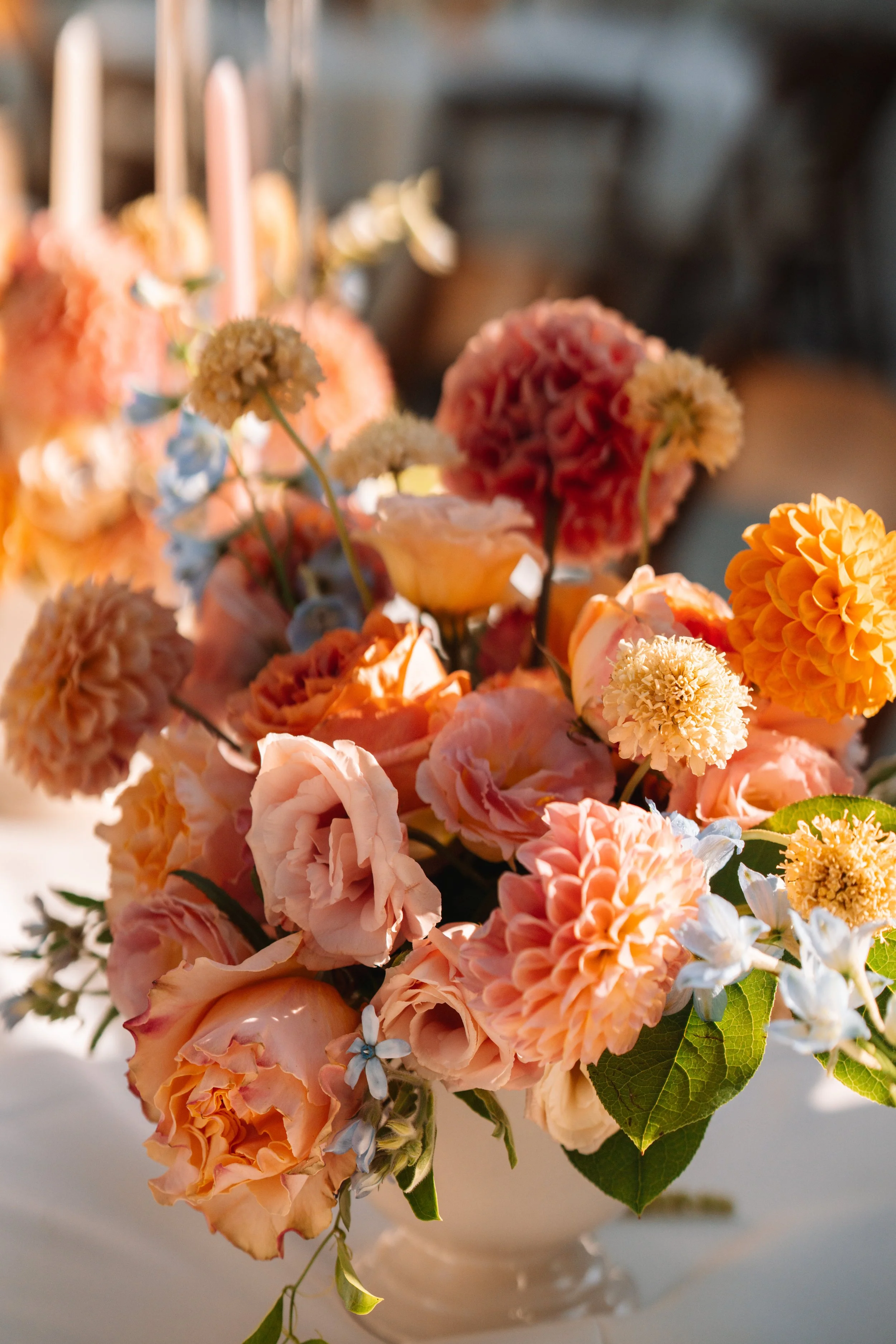 This wedding was a true reflection of the bride’s vibrant and joyful spirit. With a love for bold oranges and soft touches of pink, her floral design brought a warm, playful energy to every detail of the day. Set in beautiful Los Angeles, the celebration felt effortlessly fun and personal, even complete with her favorite taco truck and beloved pizza spot, adding a unique and memorable twist for guests. Every element came together to create a lively, heartfelt celebration that perfectly captured her personality and love story.